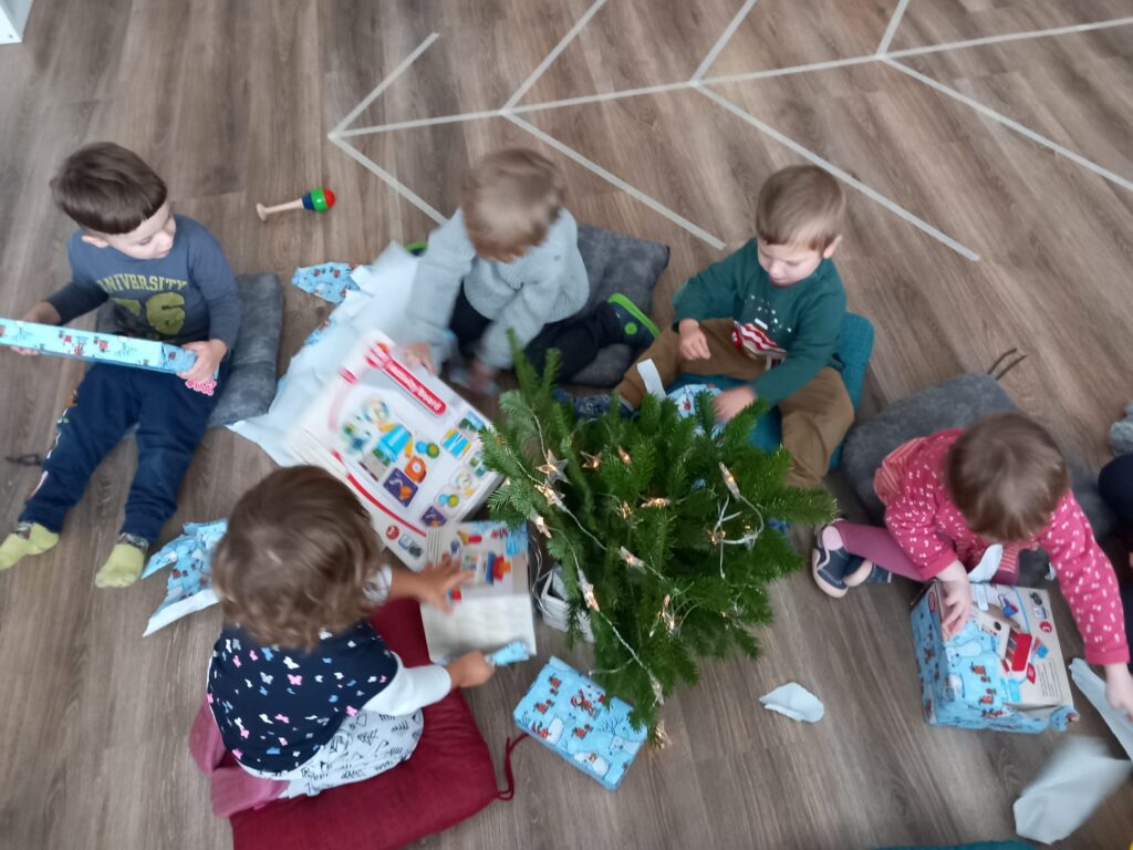 Poslední týden před Vánoci se nesl ve svátečním duchu. Děti si každý den rozbalily nějaký dáreček, ale největší nadílka je čekala poslední den. To bylo radosti! Vytvořili jsme vrkoče a ochutnávali cukroví od maminek.