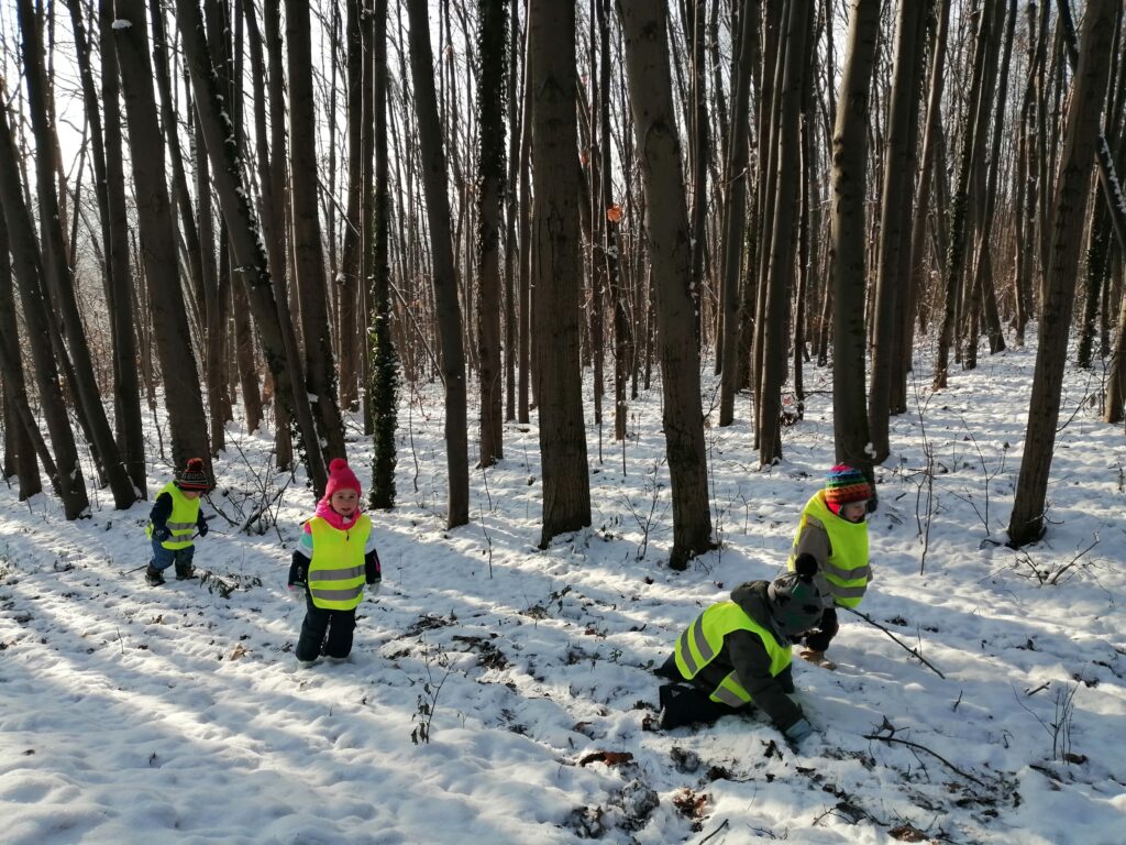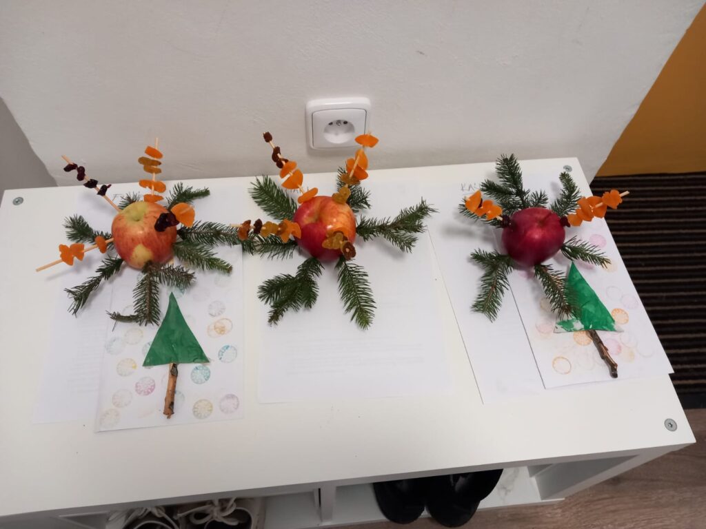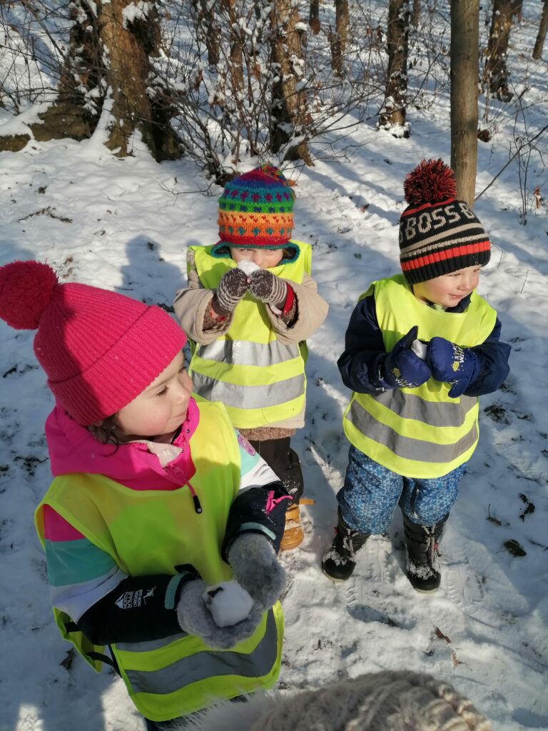 Období které bylo protkáno tajemnem, tradicemi a radostí. Na čerty a Mikuláše jsme navázali tématem o andílcích. Hráli jsme si na ně, cvičili s hvězdičkami, tvořili přáníčka pro rodiče a adventní čas jsme si zpestřili divadlem. Před oteplením jsme si stihli užít i pořádnou nadílku sněhu. V tyto dny jsme chodili brzy ven, abychom si jej užili plnými doušky třeba v lese. To byla atmosféra!