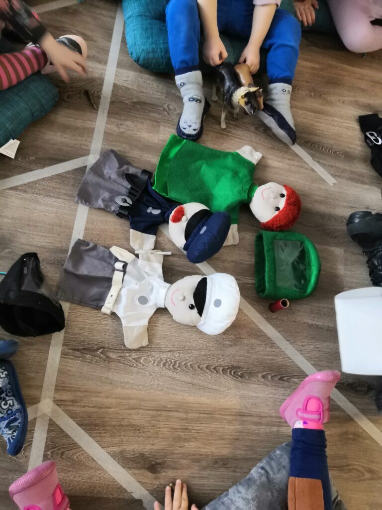 V úterý nás ve skupince navštívila paní policistka s preventivním programem. Děti byly spíše ostýchavé, ale paní policistka si je získala maňásky s policisty v různých uniformách. Vyprávěla dětem, kteří zvířecí kamarádi policii pomáhají, jak se policistům dovolat, ale hlavním cílem byla prevence.